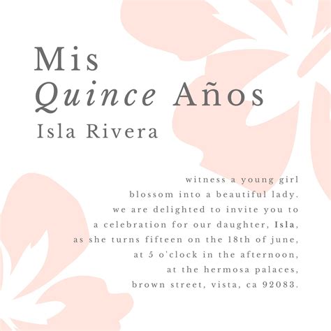 Quinceanera Invitation Wording Samples - Find inspiration and examples for host line, quince name, mass details, reception details, rsvp, dress code, and more. Examples of quinceanera invitation wording. Find inspiration for your quinceañera invitation wording with these examples and tips. How to create a quinceanera party invitations. Learn how to structure and word your quinceañera invitations, from formal to casual.