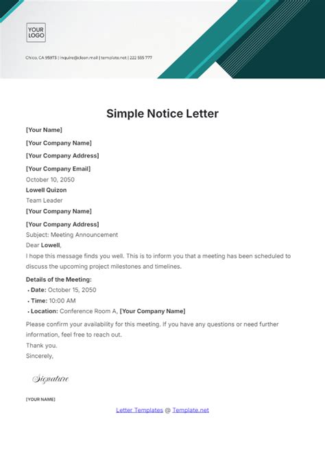 Simple Notice Email Template Uk - In this article, we describe what a resignation letter is, common types of notice letters as well as provide templates on how to write these resignation letters. A resignation letter is a formal document used to notify an employer or manager of an employee's intention to leave their position. Here is a template for resigning via email: Resignation with immediate.